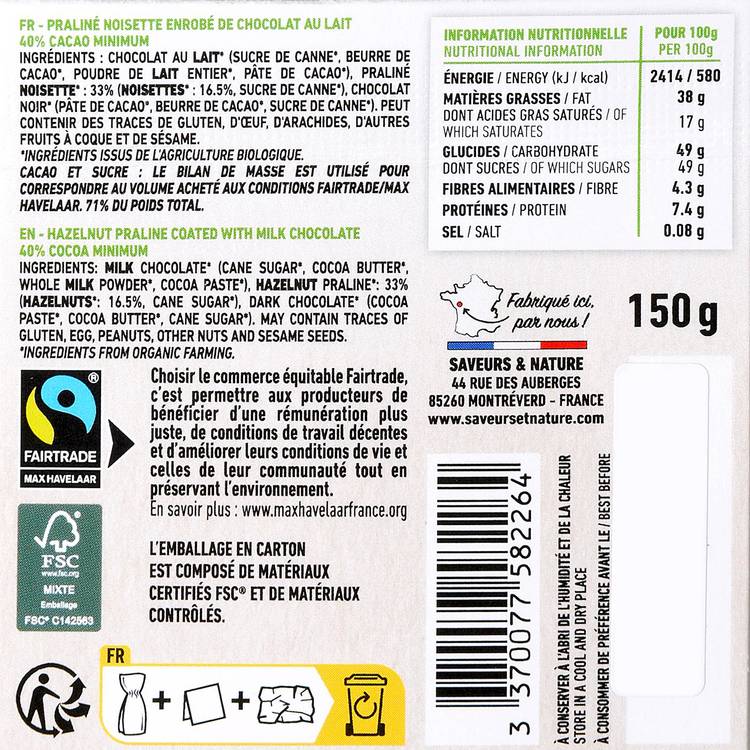 Le Chocolat au lait 32% BIO
